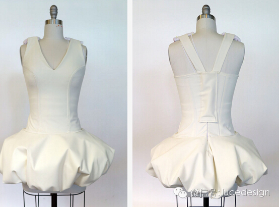 在一处黑暗的环境只要有些许光亮,本能很快的就能注视著那道光霞,旧金山设计师 Natalie Walsh,似乎是看准了这点设计出了一款光纤闪烁的洋装。这个创新的构思需要执行在一套洁白的澎裙洋装,而光纤丝包裹在衣裳上形成一道道迷人光束。