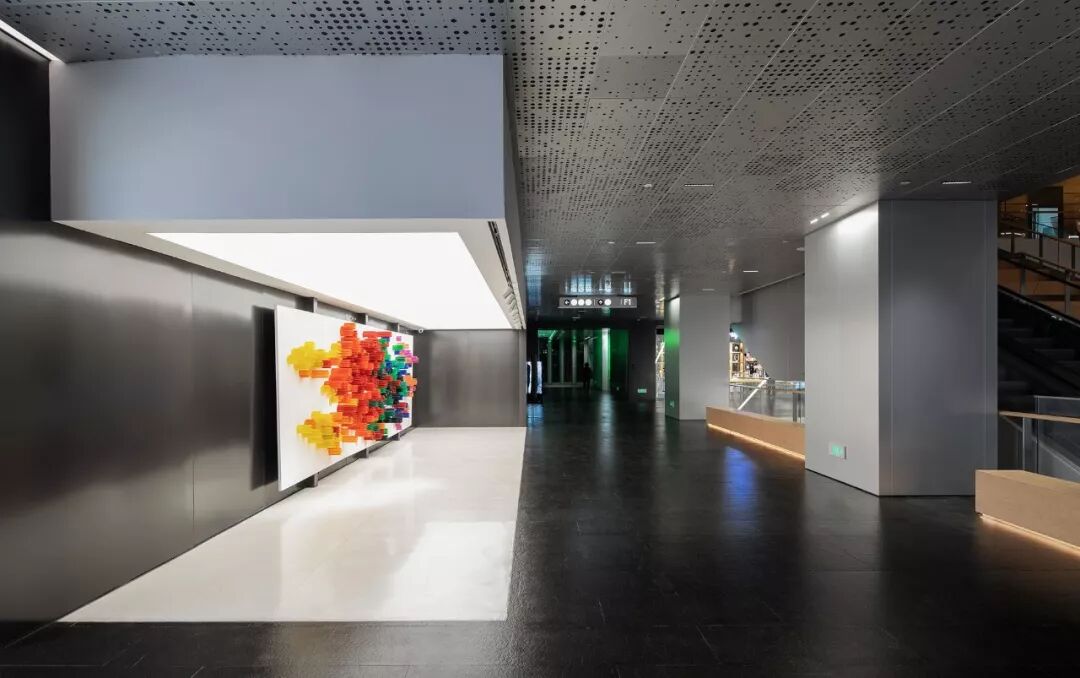 本案的灯光设计,便是延续了建筑的风格与氛围定位,在结合中庭自然光线的基础上,设计师打造一个横贯中空格局的大型灯饰艺术装置,堆叠的白色球状灯体与饰物浑然一体,串联起空间内最为突出的视觉重点,散发着莹莹点点、皎洁明朗的光芒,展呈出迭代美学视像的感官效果,与建筑体量、室内氛围极佳地结合在一起。